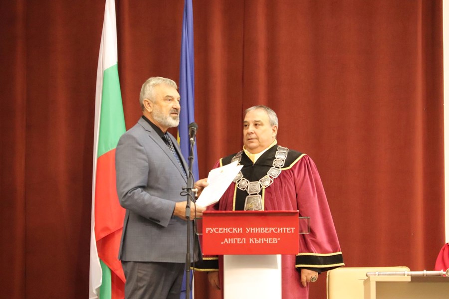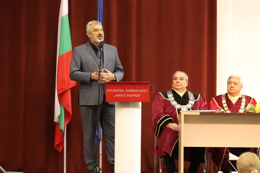 Ректорът проф. Генчо Попов също направи обръщение, подчертавайки, че през годините Русенският университет се е утвърдил като значим фактор в българското образователно и научно пространство. „Силата на нашия университет се корени в неговата многопрофилност и способност да обединява преподаватели и студенти с разнообразни интереси“, посочи проф. Попов. Той отбеляза също, че благодарение на усърдната работа на преподавателите и студентите, Русенският университет заема своето място сред водещите научно-изследователски университети в страната.