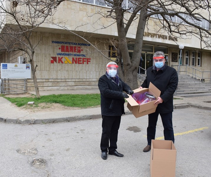 Ректорът на Русенския университет чл.-кор. проф. Христо Белоев дари днес на изпълнителния директор на Университетската болница "Канев" Иван Иванов първите 50 изработени предпазни шлема за нуждите на медицинските работници. Това съобщиха от висшето училище в крайдунавския град.