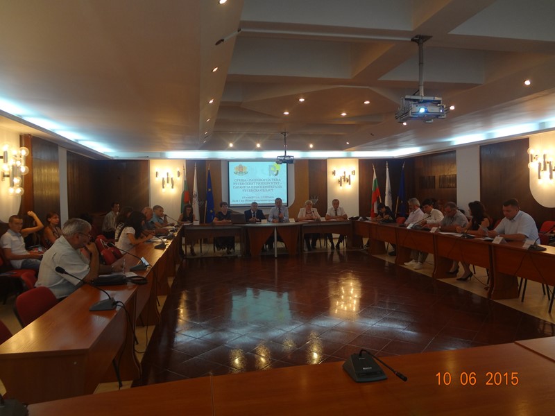 На срещата присъстваха Стефко Бурджиев - областен управител на Област Русе, чл. - кор. проф. д.т.н. Христо Белоев - ректор на РУ „Ангел Кънчев”, проф. д-р Михаил Илиев – зам. ректор по учебната работа, проф. д-р Велизара Пенчева - зам. ректор по развитие, координация и продължаващо обучение, проф. д-р Юлиана Попова – зам. ректор по евроинтеграция и международно сътрудничество, Димитър Райнов – началник на РИО – Русе, кметове, зам. кметове и други представители на общинските администрации в Област Русе.
