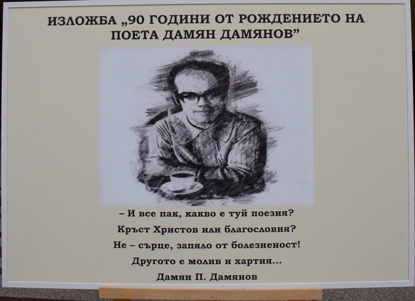 Изложба, посветена на 90-годишнината от рождението на поета Дамян Дамянов, бе открита днес в Русенския университет "Ангел Кънчев". Събитието съвпадна с връчването на наградите от традиционния конкурс за поезия и проза на университетската библиотека.