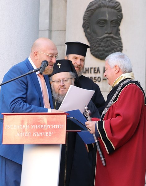 „Благодаря ви за изключителния принос към региона и страната. През годините Русенският университет се утвърди като водещо учебно заведение и развоен център, който продължава да допринася за модернизацията на редица сектори, както и за политическото и икономическо развитие на областта и страната. Пожелавам ви още много успехи в научното поприще, които да ви носят истинско удовлетворение! Съхранявайте и предавайте искрата към познанието и на следващите поколения“, каза областният управител Станев в обръщението си към ректора на учебното заведение академик Христо Белоев и академичното ръководство на университета. Той апелира към студентите да са активни и да бъдат сигурни, че винаги са добре дошли с идеите и инициативите си в Областна администрация – Русе.