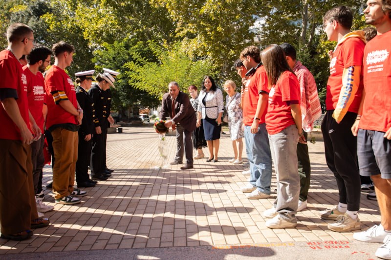 Посрещането на новите студенти премина под знака на българските традиции. Облечени в народни носии, техни български колеги ги приветстваха с фолклорна музика, питка с шарена сол и китки здравец.