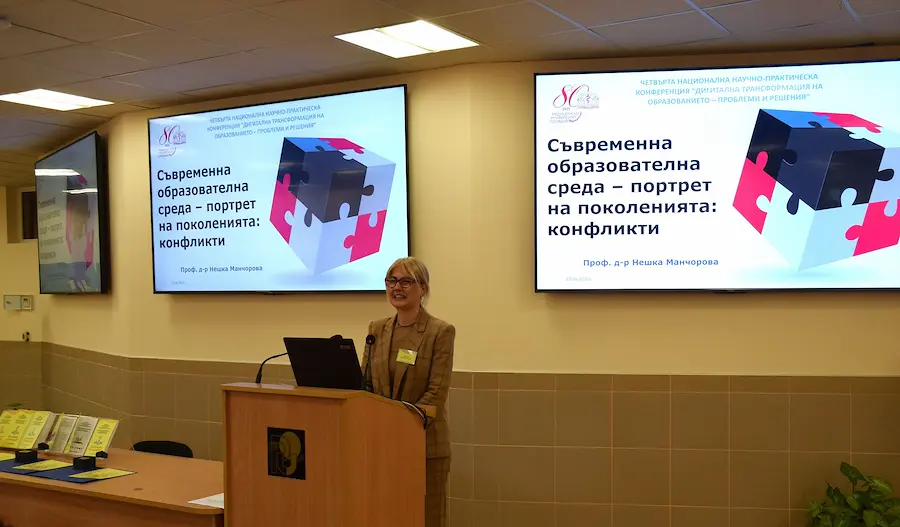 В рамките на пленарната сесия бяха разгледани ключови теми като конфликта на поколенията в образователната среда, регулацията на изкуствения интелект при докторантите и дигиталната сигурност. Авторите на най-добрите доклади бяха отличени с кристален приз от академичното ръководство. Конференцията продължава своята работа и утре, 24 април, когато участниците ще заседават в 13 специализирани подсекции в зали с интерактивни дисплеи.