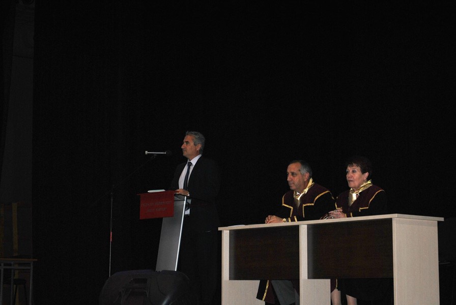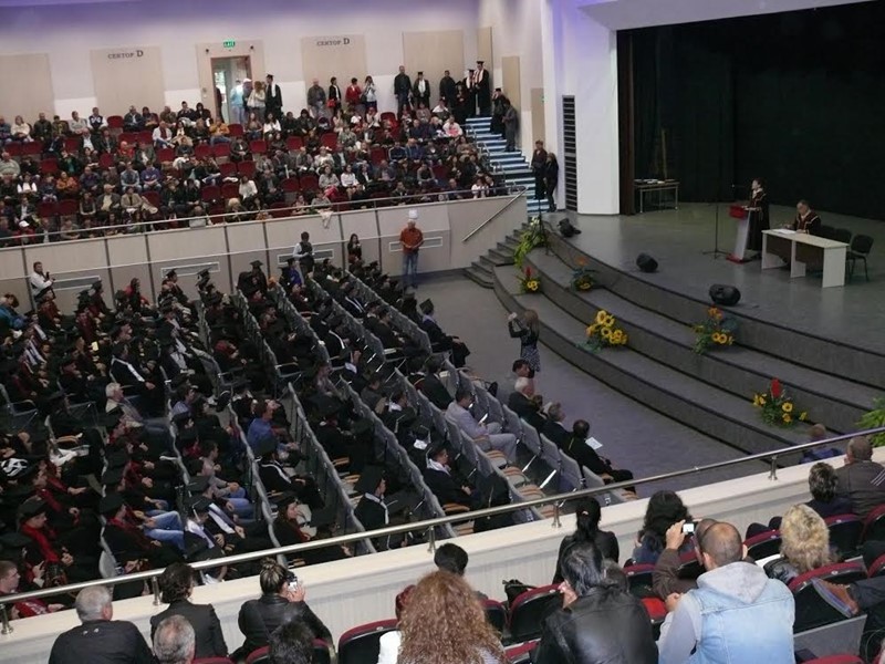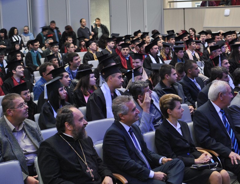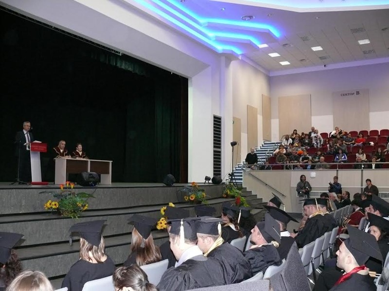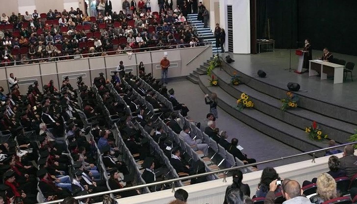 На тържествената церемония днес бяха връчени дипломи на 1049 абсолвенти, успешно завършили бакалавърски и магистърски специалности. Зам.-ректорът проф. Михаил Илиев връчи лично дипломите на 69 от тях, които са отличници на випуска и отделните специалности.