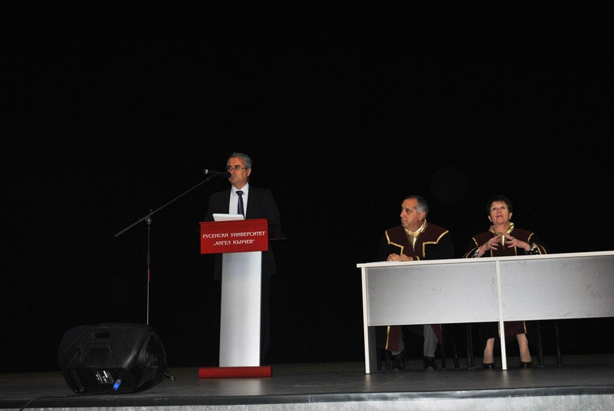 „От своето създаване до днес Русенският университет „Ангел Кънчев“ успешно се утвърди като значимо звено в структурата на българското образование, което работи в посока на създаване на качествени и добре подготвени кадри. През годините висшето училище умело съчета традицията със съвременните методики и иновативни подходи в преподаването. Успешната реализация на пазара на труда на възпитаниците на Русенски университет „Ангел Кънчев“ както в частния, така и в публичния сектор, е безспорно доказателство, че той подготвя висококвалифицирани и образовани специалисти с модерно и креативно мислене!“ се казва в поздравителния адрес, който г-н Наков прочете от името на кмета Пламен Стоилов.