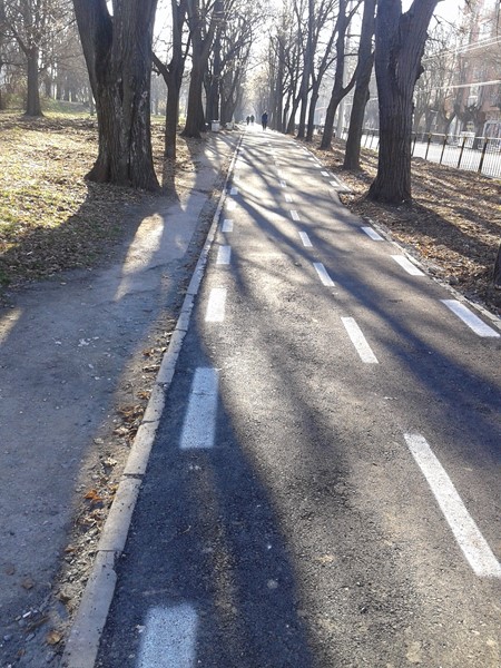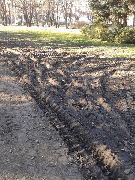 Не стига това, а и затревените площи и съществуващи алеи бяха унищожени под напора на строителната техника. Не можеше ли да се направи цялостен ремонт на пешеходна зона, като част от нея се ограничи за колоездачи.