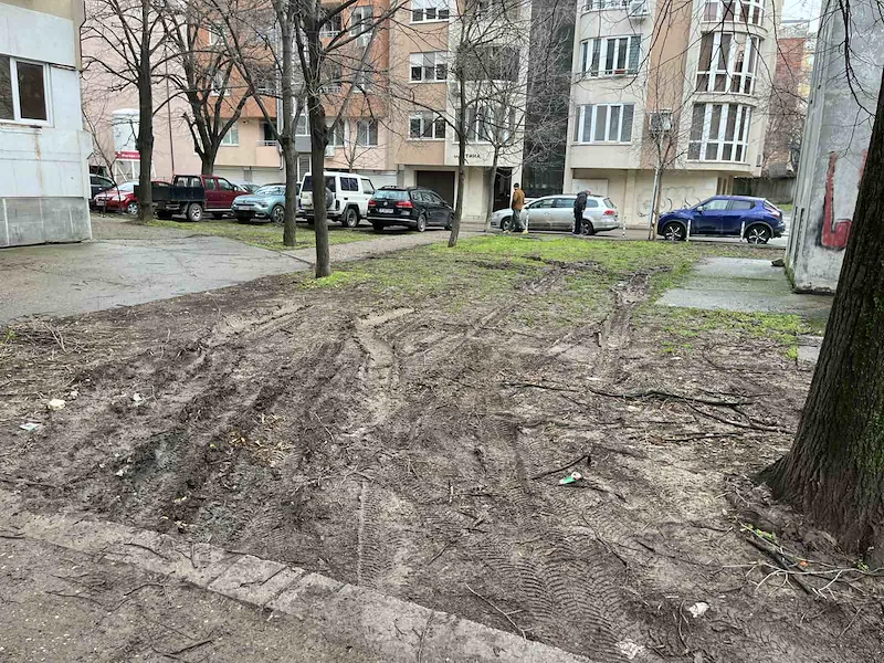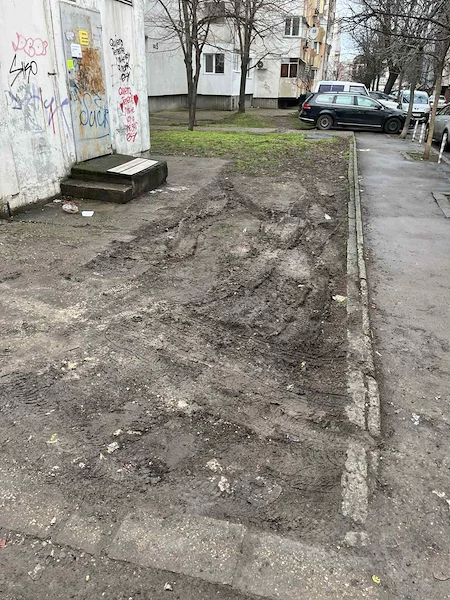 "Зелената площ на адреса е напълно унищожена. На мястото системно се паркират леки автомобили, камиони и бусове, като има и случаи, в които теренът се използва като off-road трасе", алармира Милен Тодоров в групата "Сигнали към Община Русе".