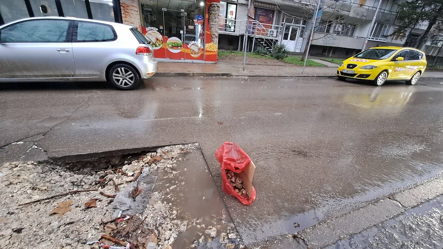 Русенци "обезопасиха" кратер до университета с картонена табела