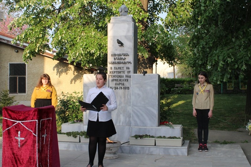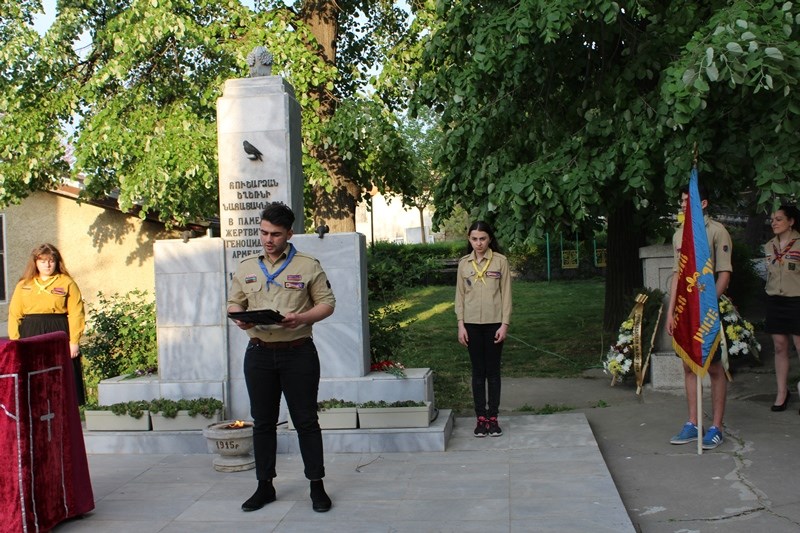 Представители на младежката арменска организация също се включиха в инициативата като рецитираха патриотични стихове. В края на церемонията бяха поднесени венци и цветя пред Паметника в двора на храма.