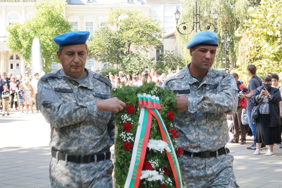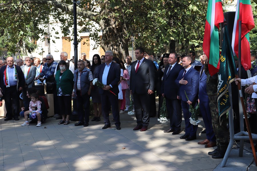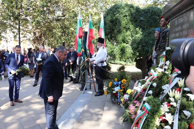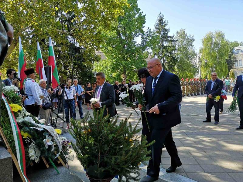 Областният управител на Русе Борислав Българинов и неговият заместник Синан Хебибов бяха сред гостите на днешната тържествена церемония по случай 136-ата годишнина от Съединението на Княжество България и Източна Румелия.