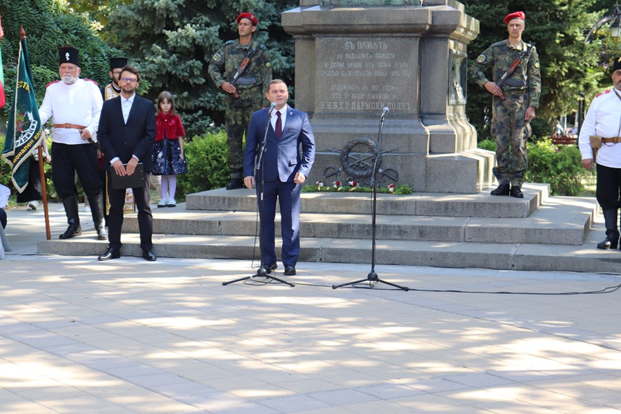 Тържествената церемония завърши с полагане на венци и цветя пред паметника на загиналите в Сръбско-българската война.