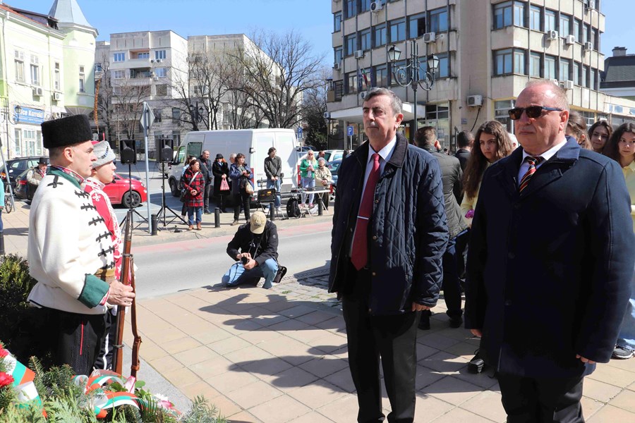 По традиция церемонията завърши с полагане на венци и цветя, а Мартин Сиромахов от Вокално студио „Слънчеви ноти“ с вокален педагог д-р Наталия Константинова изпълни „Българийо, единствена си ти“. Прозвуча и стихотворението „Самоубиец“ от Пенчо Славейков. В събитието се включиха Общинският духов оркестър, както и Младежкият гвардейски отряд към Общинския младежки дом. Водещ на церемонията беше актьорът от Драматичен театър „Сава Огнянов“ Венцислав Петков.