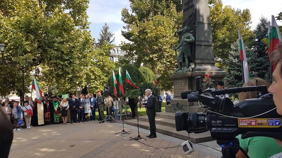 Той се обърна към присъстващите с думите: „Събитията от 6 септември 1885 г. обединяват в едно народ, политици и партии в името на каузата за национално обединение! В оня паметен ден народът ни показва пред целия свят, че има волята сам да съгражда собствената си съдба в една свободна и обединена България! Поривът за единство и обединение е поредният символ на несломимия български дух, преминал през изпитанията на историята и възприел идеята за своето Утре – за един нов етап в политическото и икономическо развитие на страната!“
