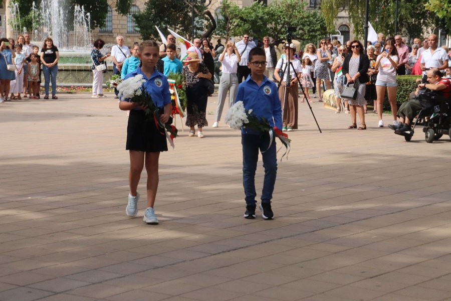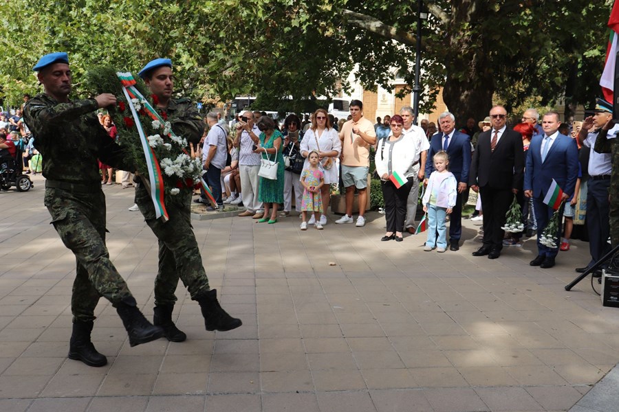 Русенци почетоха 140-ата годишнина от Съединението на Княжество България и Източна Румелия с празнична церемония и полагане на венци и цветя пред Паметника на загиналите в Сръбско-българската война. Събитието, организирано от Община Русе, събра множество официални лица, включително заместник областния управител Георги Георгиев, кмета на града, представители на духовенството и гражданите.