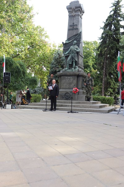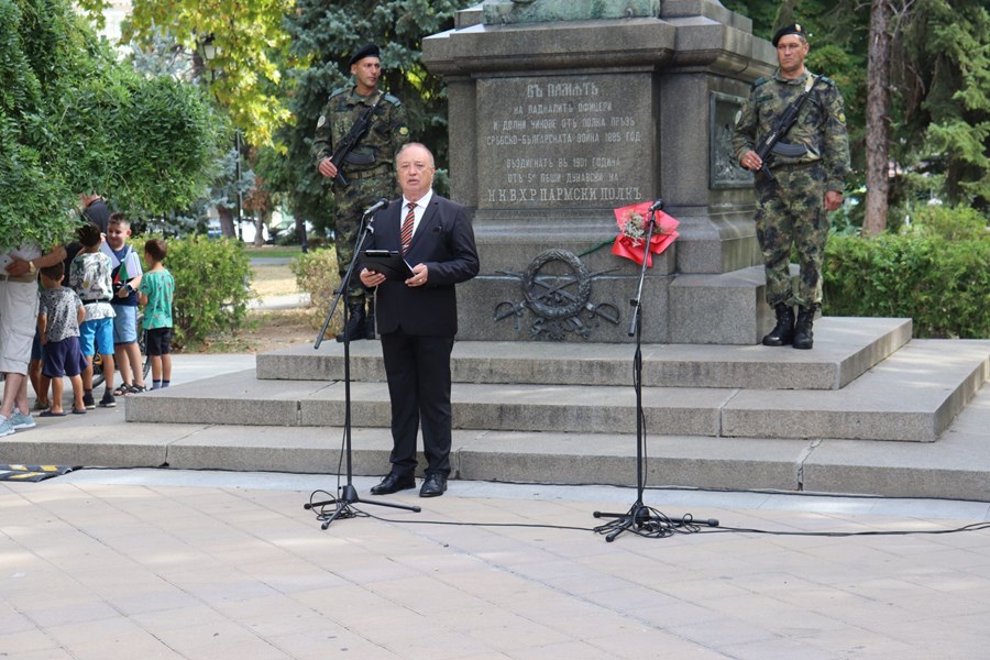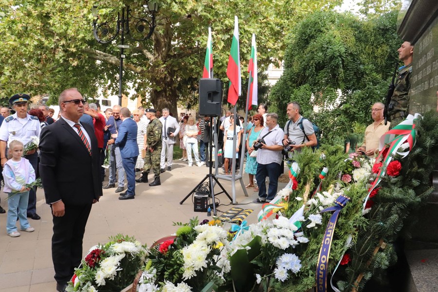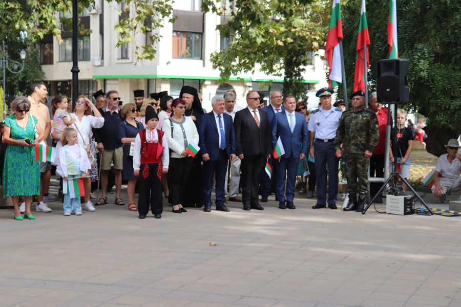 Заместник областният управител Георги Георгиев призова да разглеждаме Съединението не само като политически акт, а като държавнически връх. "В онзи момент ние доказахме, че когато сме заедно, не просто съществуваме, а градим бъдеще! Истинската сила на Съединението е в това, че то е плод на единомислие и солидарност," отбеляза той.
