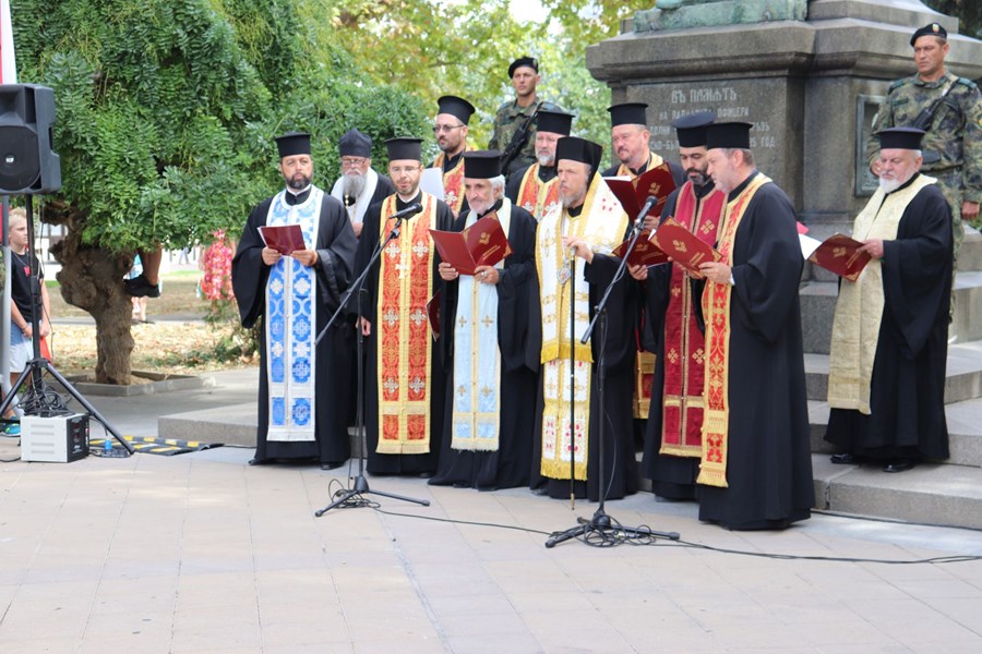 По традиция бе отслужена заупокойна молитва в памет на загиналите и благодарствен молебен от Негово Преосвещенство Макарий, викарий на Русенския митрополит Наум. Дядо Макарий отбеляза, че Съединението е светъл ден за историята, който насочва нашите стъпки. "Много е трудно в историята, особено днес да се преборим и да извършим дела, които да се превърнат във фарове на историята, които да осветяват тъмните дни на нашето ежедневие," подчерта той.