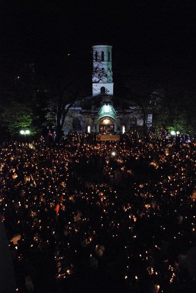 Въпреки че според канона храмът се обикаля на Разпети петък, спазвайки утвърдената традиция след поздравлението с „Христос воскресе!“, и отговора „Воистина возкресе“, мнозинството обиколи храма.