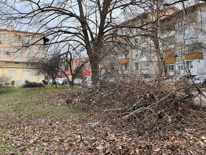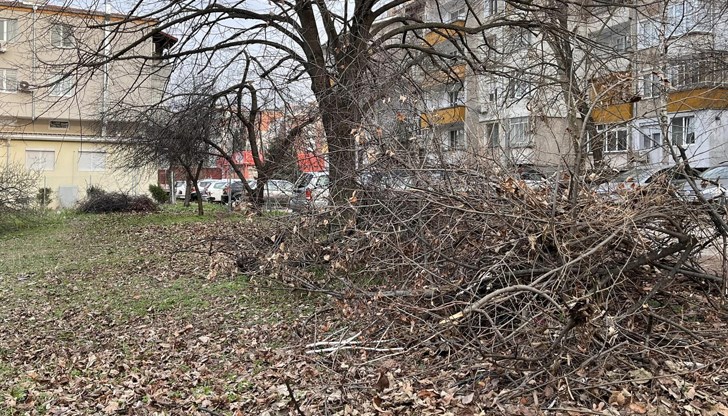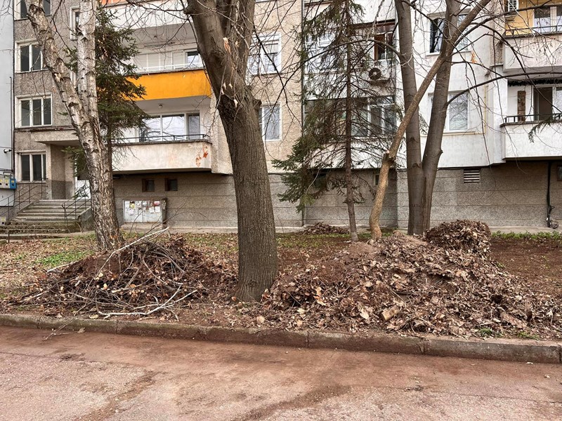 Жители на блок 33 в квартал "Дружба 3" призовават отговорните служби да премахнат/транспортират събраните от тях начупени от зимата клони и опадали листа.