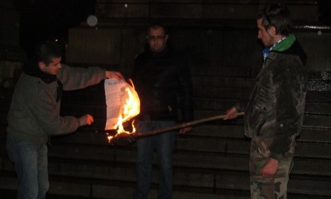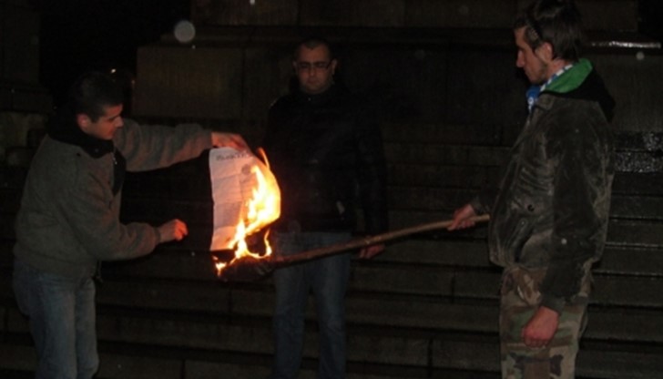 Русенци запалиха "Ньойският договор" пред Паметника на Свободата