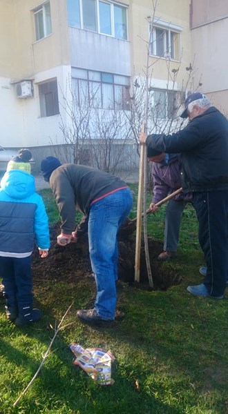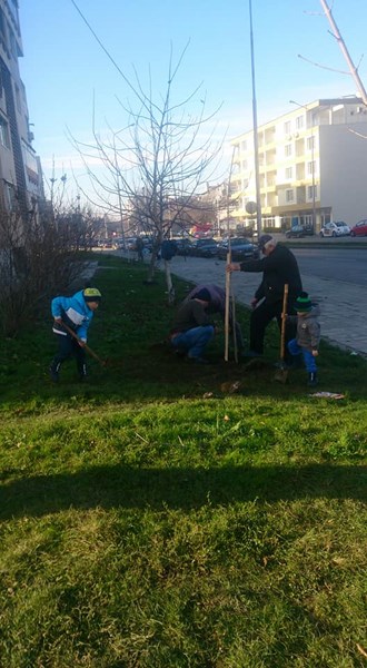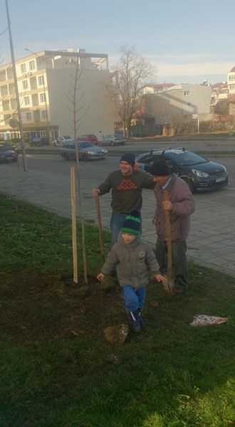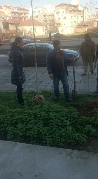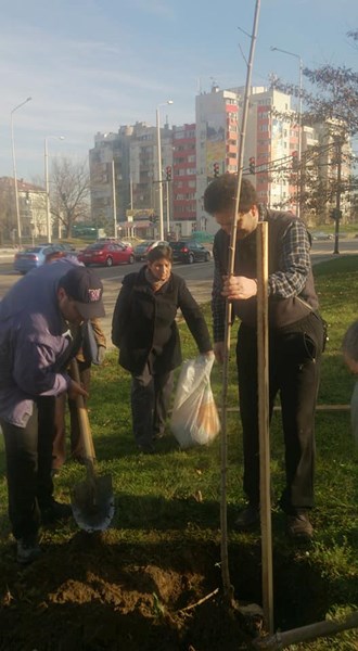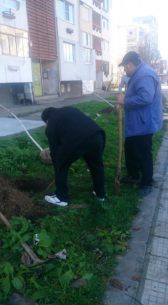 Живущи на бул. "Неофит Бозвели" засадиха фиданки с депутата от БСП.