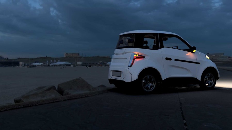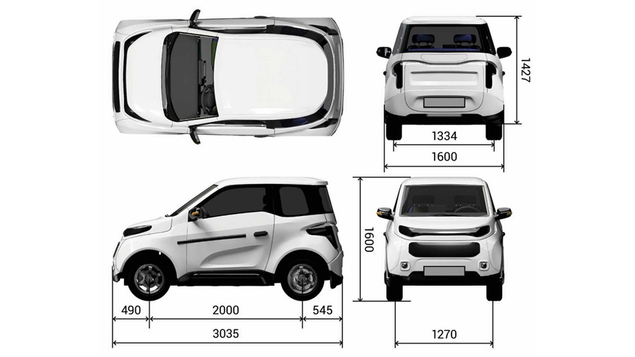Салонът на колата е малък, но е предвиден за четирима души. Задвижването е на принципа електродвигател-колело. С едно зареждане колата ще изминава 200–500 км в зависимост от вида акумулатори.
