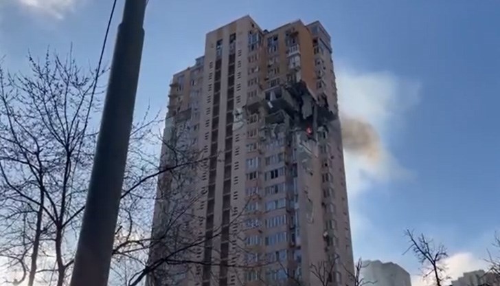 Кадрите показват, че няколко апартамента са разрушени изцяло, външните им стени и прозорци липсват. По тротоара има отломки. Някои прозорци на долните етажи изглеждат счупени.