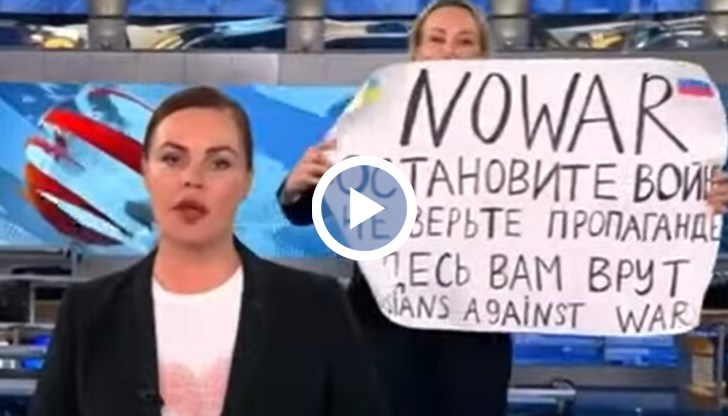 Тя застана зад водещата на емисията, а на плаката беше написано: „Не на войната! Не вярвайте на пропагандата. Тук ви мамят! Руснаци срещу войната”, предава NOVA