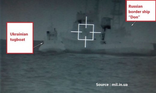 От украинска страна обаче разпространиха съобщение, че руски кораби на бреговата охрана на 25 ноември са извършили нападения срещу корабите на украинския флот, които са се занимавали с планирано преместване от пристанище Одеса до пристанище Мариупол на Азовско море.