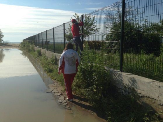 Руски олимпийци прескачат ограда, за да стигнат до морето в Кранево