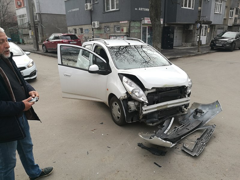 За пореден път на кръстовището на улиците "Димчо Дебелянов" и "Сакар планина" два автомобила са намачкани, а един човек е с контузия.