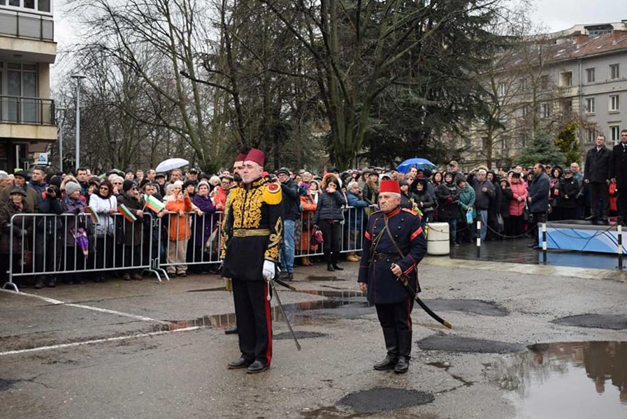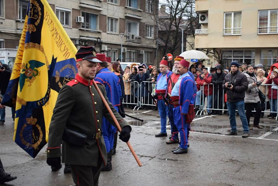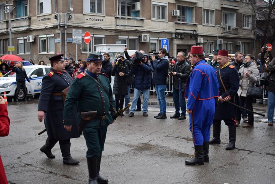 След него, пред храма, започна и историческата възстановка на Дружество "Традиция" в Русе, която ни връща към времената, когато крайдунавският град е бил освободен от руските войски.