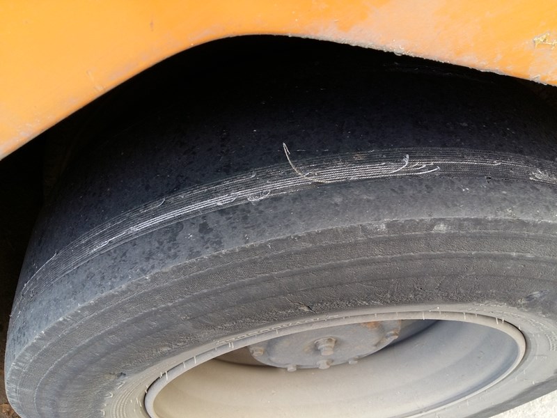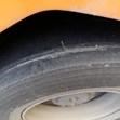 Така изглежда гума на тролейбус от градския транспорт в Русе.