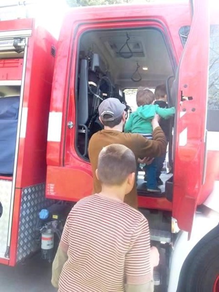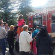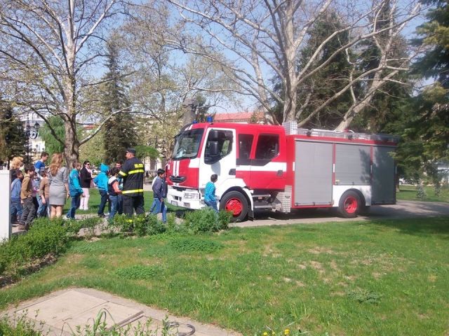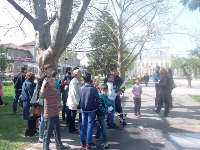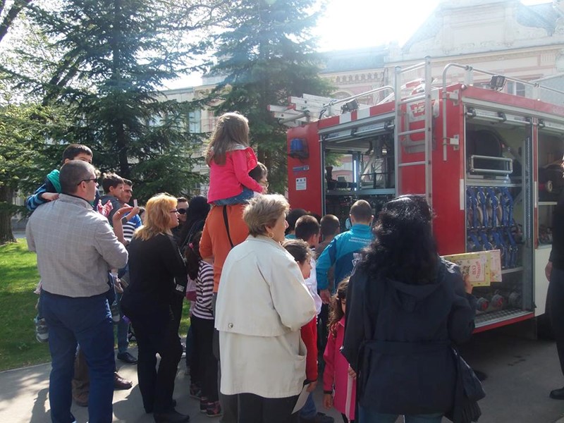 Екипът пожарникари, с чисто нов противопожарен автомобил показа екипировката си. Децата разгледаха отвън и отвътре пожарната кола, радваха се на униформата на пожарникарите, държаха истински пожарникарски шланг и управляваха с помощта на пожарникарите водна струя.