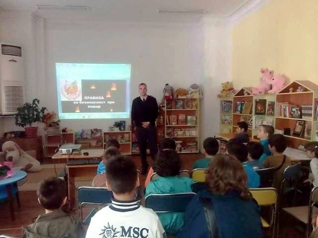 Инспектор Светослав Войчев разказа на малчуганите всичко най-важно за същността на пожарникарската професия, за опасностите пред екипите, когато са „на терен” да гасят пожари, за правилата за безопасност и поведението при пожар.