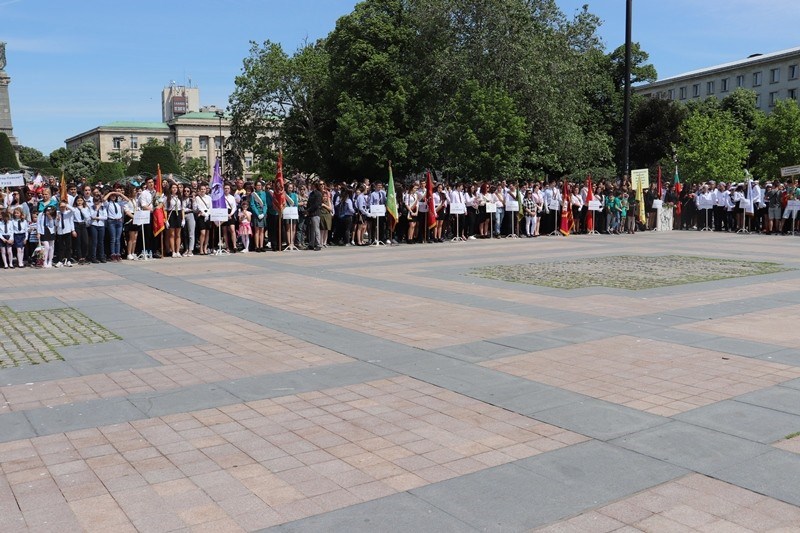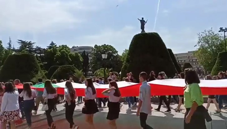 Русенските учители и ученици дефилираха днес с 80-метров трибагреник по централните улици