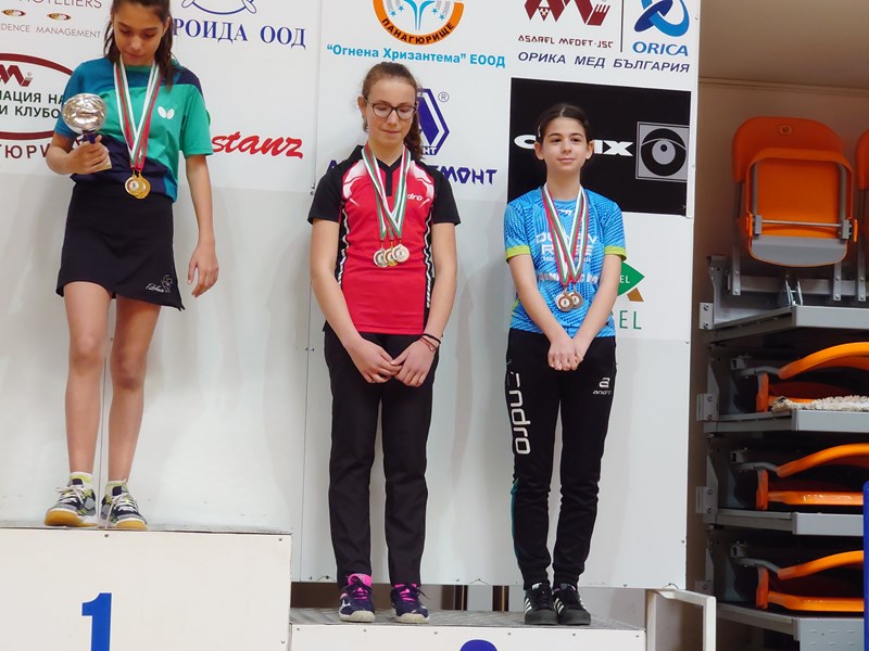 В индивидуалната надпревара Лила Лъвчиева не успя да защити миналогодишната си шампионска титла и спечели бронз, като на полуфинал бе спряна от бъдещата шампионка Жаклин Райкова от “Дигеста” София. Мелиса Неджиатиева спечели предварителната си група и попадна в основната схема, където загуби след оспорван мач. Дзиаин Ванг отстъпи на представителка на “Орфей” Смолян с 2:3. Тя игра и два четвъртфинала на двойки с Неджиатиева, и на смесени двойки с Берк Рида. На двойки момичета Лила Лъвчиева спечели бронз с Паула Вълчанова “Светкавица” Търговище. Още един бронз за Лъвчиева на смесени двойки с Виктор Димитров “Комфорт” Варна, загубили драматичен полуфинал от Шмидт/Райкова с 2:3 гейма.