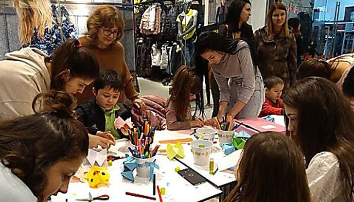 В детския кът за рисуване, колаж и оригами помагаха аниматори от Русенска детска опера, а face painting-ът бе с младата художничка от НУИ Екатерина–Мария Миткос.