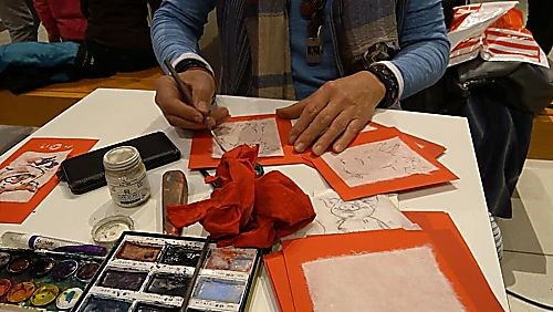 В годината на кафявото земно прасе, според китайския зодиак, традиционно за девети път, Оги Балканджиев рисува върху ръчно изработена хартия.