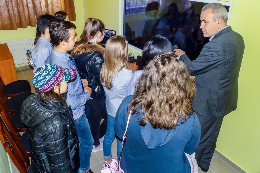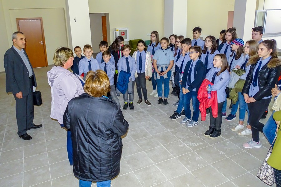 Домакините г-жа Светла Межри – ръководител на Центъра за обществена подкрепа /ЦОП/ и г-жа Деяна Ангелова – специалист социални дейности посрещнаха своите гости и ги въведоха на втория етаж пред „синята стая“, където учениците научиха в кои случаи и как се изслушва дете при делата за развод и родителски права. Съдия Иванов обясни на достъпен език как се провежда разпит на малолетни пострадали или очевидци на престъпления в съдебното производство, като отбеляза, че те не са длъжни да говорят истината и не носят наказателна отговорност за лъжесвидетелстване.