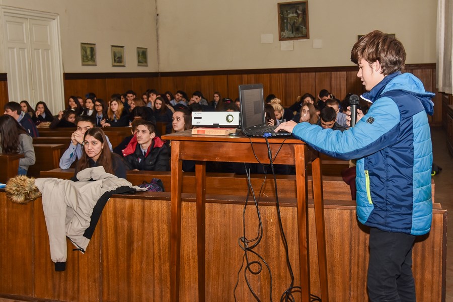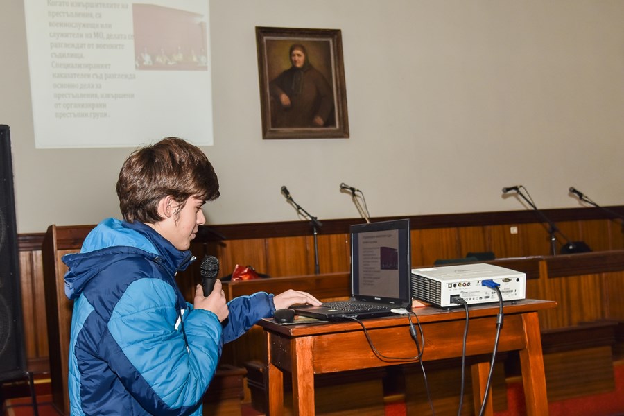 В края на срещата деветокласникът Матю Машков, който в Деня на отворените врати в Окръжен съд – Русе, проведен на 20 октомври 2017 г., беше отличен с първа награда в конкурса за ученическа творба, представи пред своите съученици презентацията си на тема „Разделение на властите и структура на съдебната система в РБългария“.