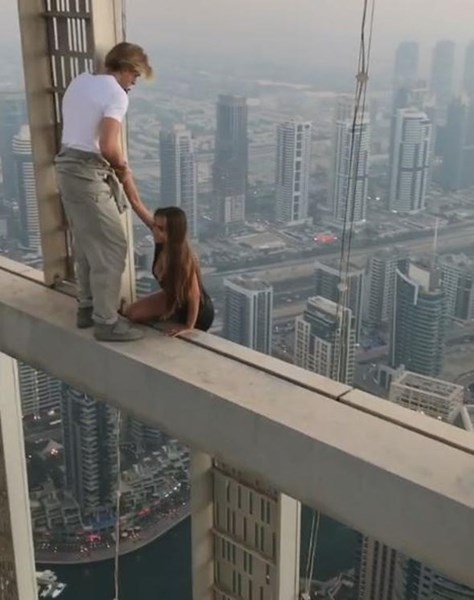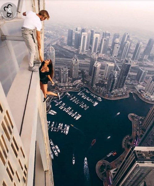 Красавицата увисна във въздуха, като разчиташе единствено на млад мъж, който я държи за ръката. Снимките и видеото бяха споделени в профила й в „Инстаграм”, където тя има над 3 млн. последователи.