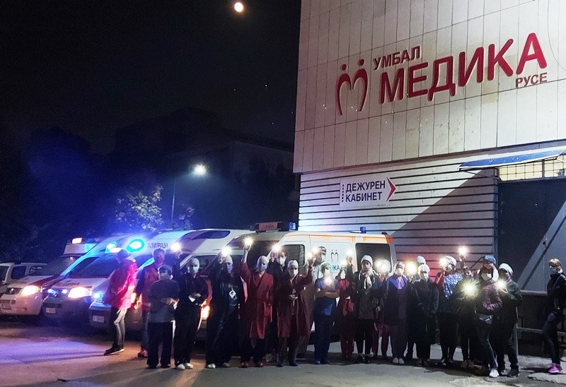 Медиците от Центъра за спешна медицинска помощ, русенските лечебни заведения, както и тези от МБАЛ „Юлия Вревска“ в Бяла се включиха в импровизиран флашмоб. По време на него те излязоха пред лечебните заведения със запалени светлини на телефоните си, а също така включиха и сирените на линейките, с които разполагат.