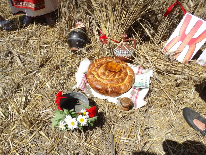В ранното утро по пътя към нивата освен жътварски песни се понесоха и наричания за успешна жътва, щедра реколта и благосклонна природа. Спазвайки обичая, жътварките се бяха облекли в дълги бели рокли, увили около главите си бели кърпи и закичени с китка цвете. Групата беше предвождана от най-младата жътварка. Тази година това беше четиринадесетгодишната Стефания Димитрова – дъщеря на земеделския стопанин. Поверието гласи, че стопанката зажънва първата ръкойка. По този начин прибирането на реколтата ще приключи навреме и житото ще напълни хамбарите. Самодейките със сърпове и паламарки започнаха да прибират житените класове. Първият сноп беше завързан с червен конец за здраве и берекет. По стара традиция стопанинът отправи молитва за плодородие и спорна работа. Той развърза широко кесията си и щедро хвърли сребърни монети около ожънатите класове. Редом до Стефан Сидеров стоеше с питка в ръце стопанката на дома. По парче от ароматния хляб – символ на плодородието получи всеки участник в ритуала. В края на възстановката се люшна и кръшно българско хоро. След ритуала всички жътвари бяха поканени в дома на стопанина за щедра почерпка.