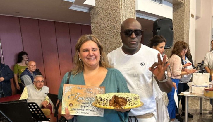Изненадата поднесе световноизвестният изпълнител Нана, който оцени като най-добра тортата на шуменката Валентина Пейчева и заяви, че досега не е опитвал по-вкусен десерт от нейния.