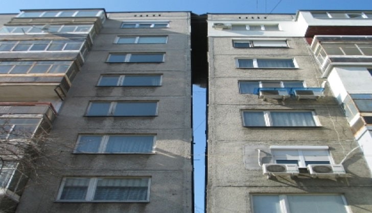 Разстоянието между секциите на двата входа вече надхвърля метър и блокът се уляга.