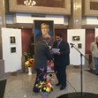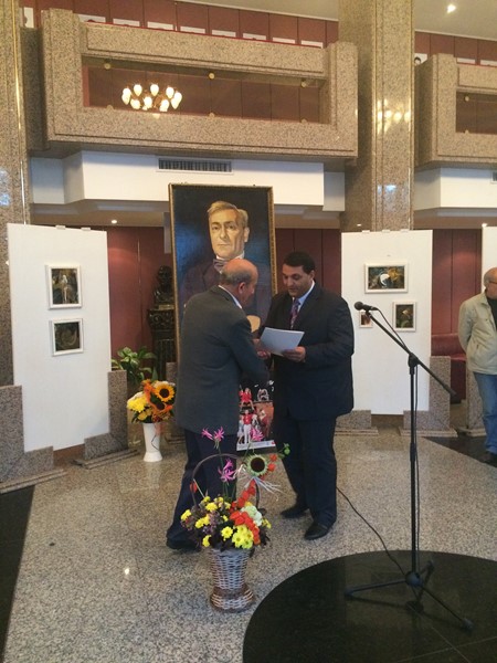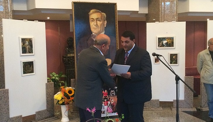 Заместник областният управител на област Русе Станимир Станчев приветства Цанко Цанев – художник в Русенския драматичен театър по повод официалното откриване на третата му самостоятелна изложба – живопис под надслов „Сънища”.