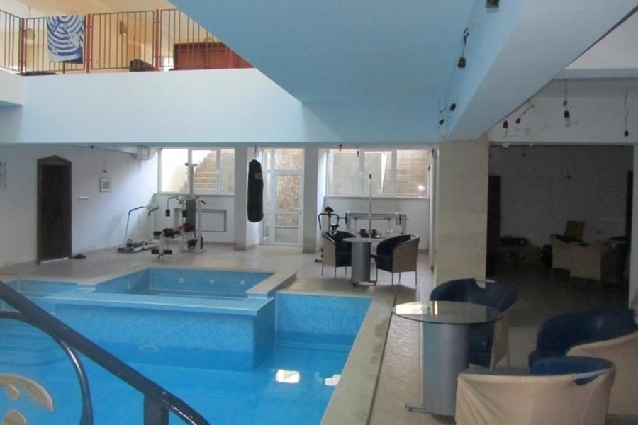 Триетажната жилищна постройка е с общо разгърната застроена площ от 1602 кв. м. и застроена площ от 398 кв.м. Според описа на частния съдебен изпълнител в сутерена има котелно, нафтово, помпено, перално, сушилно и складово помещения, стаи за хоби, басейн, фитнес зала, гараж и склад за инвентар. Първият партерен етаж пък е с антре, коридор, гардероб, два броя санитарни възли, кухня, трапезария, дневна и кабинет. На втория етаж има осем спални, две дневни, със съответните санитарни възли, а на третия етаж само една частична надстройка за помещение "хоби", ведно с всички подобрения върху имота.