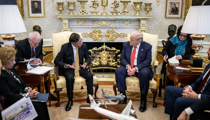 Вчера в Белия дом се състоя дългоочакваната среща между президента на САЩ Доналд Тръмп и колумбийския му колега Густаво Петро, която сложи край на месеци на остри обиди и заплахи за военна намеса. Макар и двамата лидери да определиха разговора като "позитивен", срещата премина при необичайни условия – без медии в Овалния кабинет и без официален държавен протокол.