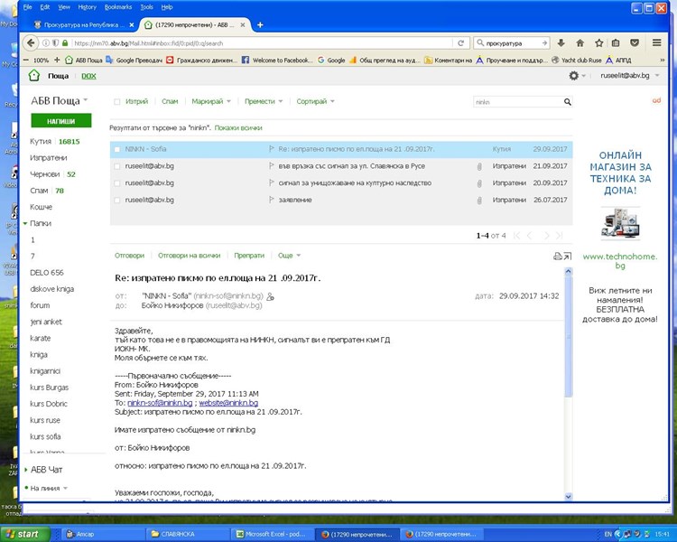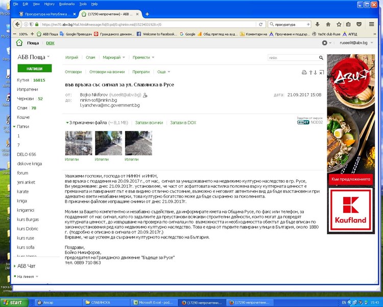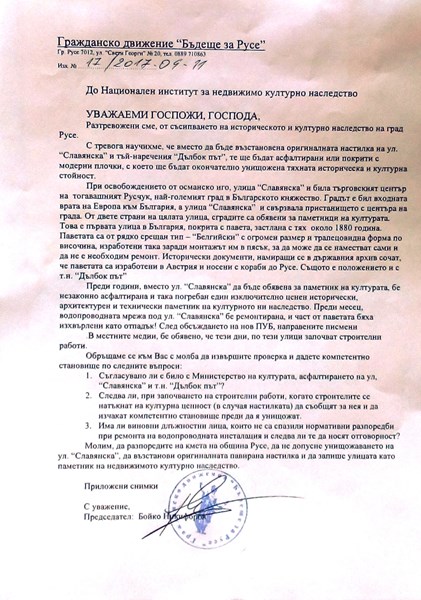 На същия ден 20 септември изпратихме сигнал до Националния институт за недвижимо културно наследство.