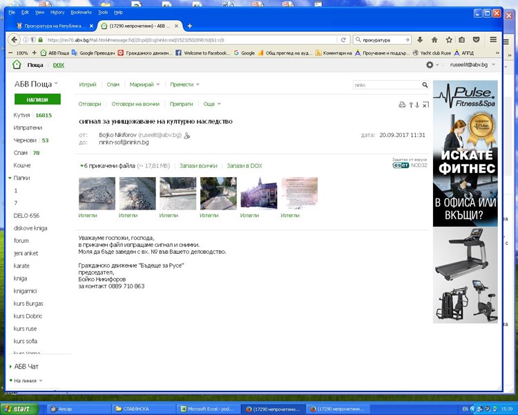 На 21 септември изпратихме сигнала до г-жа Янчева от Инспектората за недвижимо културно наследство, към министерство на Културата.
